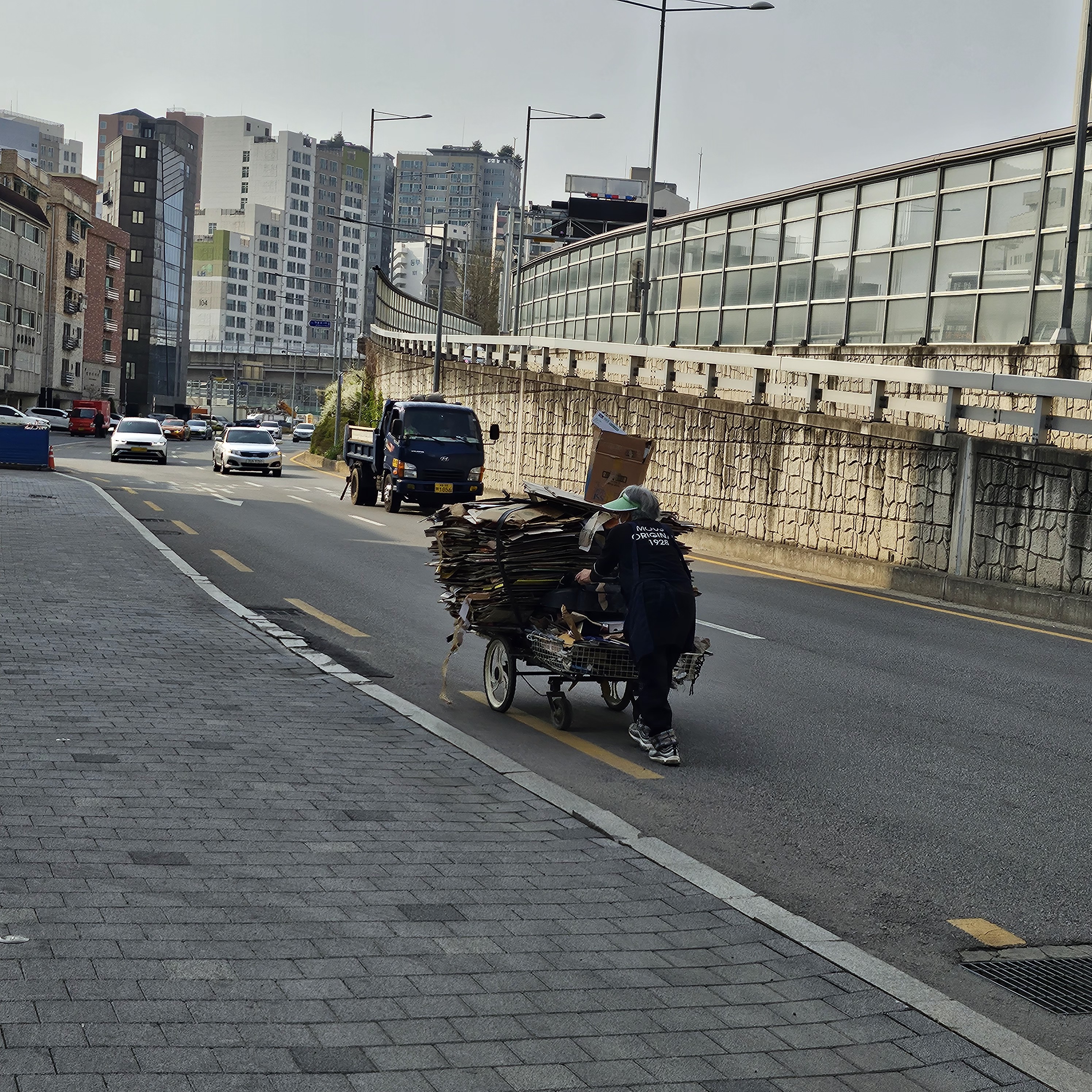 광복, 6.25사변 그리고 보릿고개를 지나 잘살보세로 이룬 경제대국 세계가 부러워 하는 한강의 기적을 만들어낸 우리네 할아버지, 할머니, 아버지, 어머니... 지금 우리 주변에는 그 어렵고 힘든 시기를 이겨내고 참아내고 또 한편으로 그분들의 노고와 수고로 이루어낸 한강의 기적 이면에는 노년, 노후에 행복해야 할 그분들이 무방비 상태로 폐지를 줍고 모아 힘겹게 한 리어커 가득 골목길에서 때로는 3차선, 4차선 도로위를 누비고 계신다 아직도 더 고생의 힘겨운 인생의 고역 같이 힘겹게 다가 온다. 폐지 1kg당 30∼40원의 희망으로 동네 구석구석 누비고 발품 팔아서 폐지 수집에 열일하시는 모습에서 왠지 내나이 60 정년퇴직(2025.6.30) 맞고 실업급여 3개월째 가슴 한 구석이 아련하고 서글픈 생각이 드는 이유는 무엇일까? 몸에 익숙해서 운동 삼아 하시는 분도 계시지만 생계를 위해서 앞이 보이지 않는 리어커나 수레에 가득 실린 폐지에 희망을 안고 도로를 역주행하는 모습 모습에서 가슴이 아련하고 아파온다. 경기가 호황이고 좋을 때는 그래도 폐지 1kg에 180원 이상도 갔지만 지금은 경기, 경제가 어려워 30원 전,후 간다는 고물상 사장님 말씀에 씁씁한 마음이었지만 그래도 리어커 한 가득 희망을 채우고 골목과 대로를 누비는 모습 그리고 열심히 사는 열정 한 시대를 그래도 열심히 사는 모습이 아닐까 해서 기록으로 사진을 남겨봅니다. 할아버지, 할머니 힘내시고 오래오래 건강하십시오. |