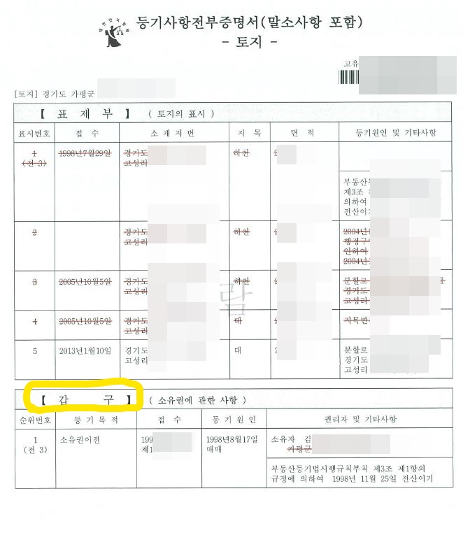 5.등기부, 토지부, 소유권 관계 모두 확인함.