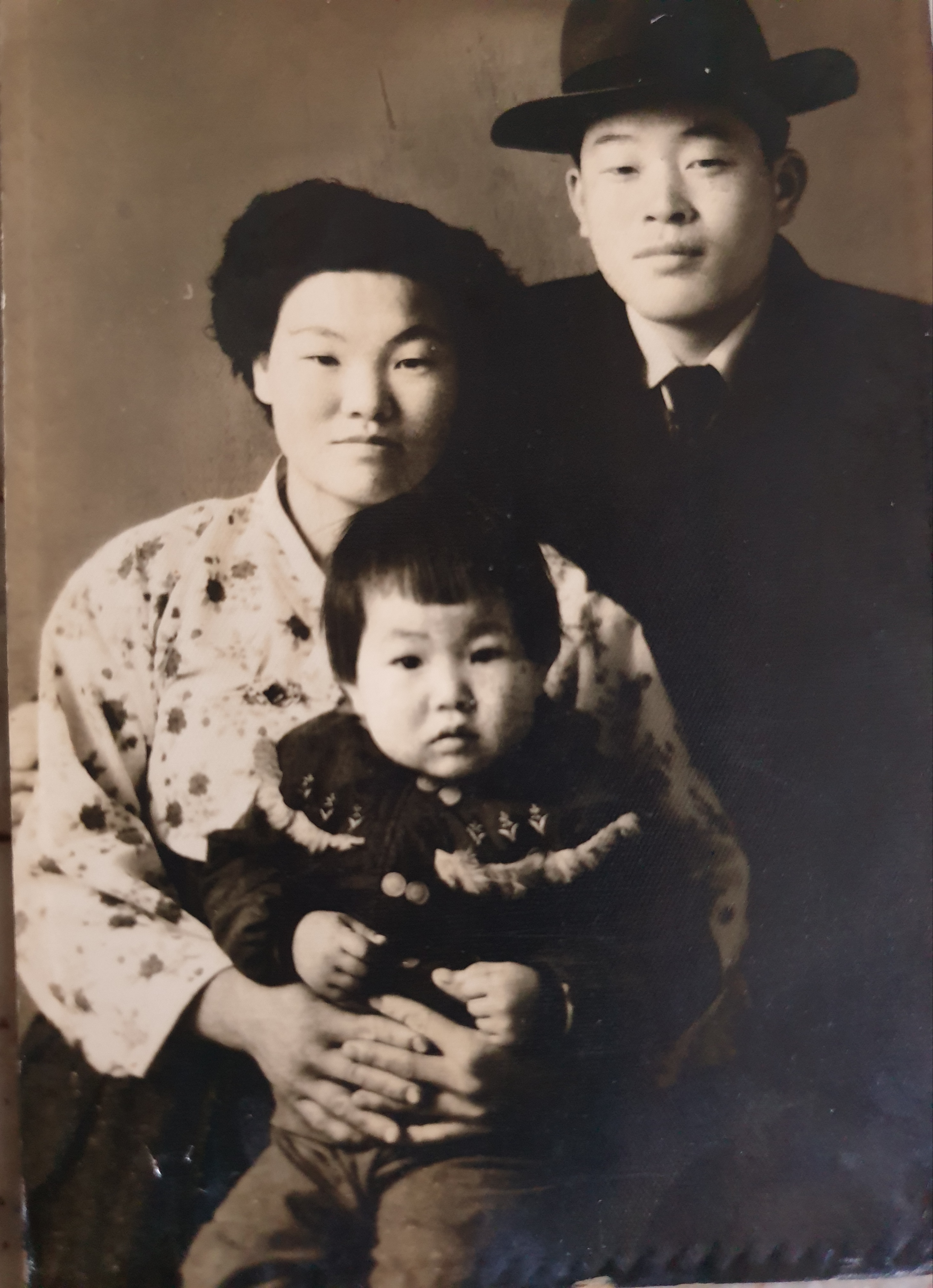박정남 2~3살경 어머님아버님이랑 셋이서 찍은 사진~