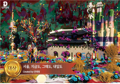 서울디지털재단은 이번 전시를 위해 지난 6월 디지털서울 NFT 공모전을 개최했고, 서울시 상징물과 랜드마크를 이미지, 영상 등 디지털 창작물(NFT작품)로 다채롭게 표현한 총 17개 팀이 선정됐다. (대상 1팀, 우수상 3팀, 장려상 13팀) 올해 대상을 수상한 작품은 <서울, 그때도 지금도 내일도>로, 작가가 직접 유화로 채색한 그림 위에 3D 모션 그래픽 작업을 더해 아름다운 서울의 모습을 표현한 영상 작품이다.