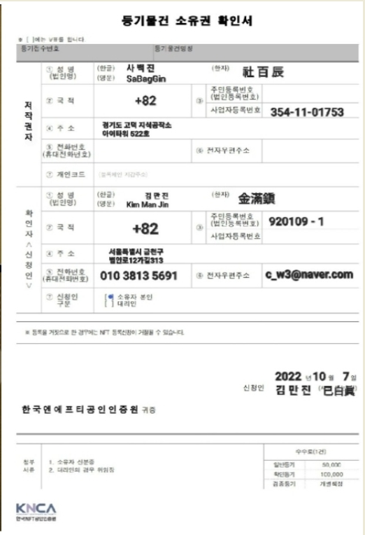 | 등기종류 | 검증등기 KNCA에서 직접 실사,방문을 통해 검증한후 등기 |