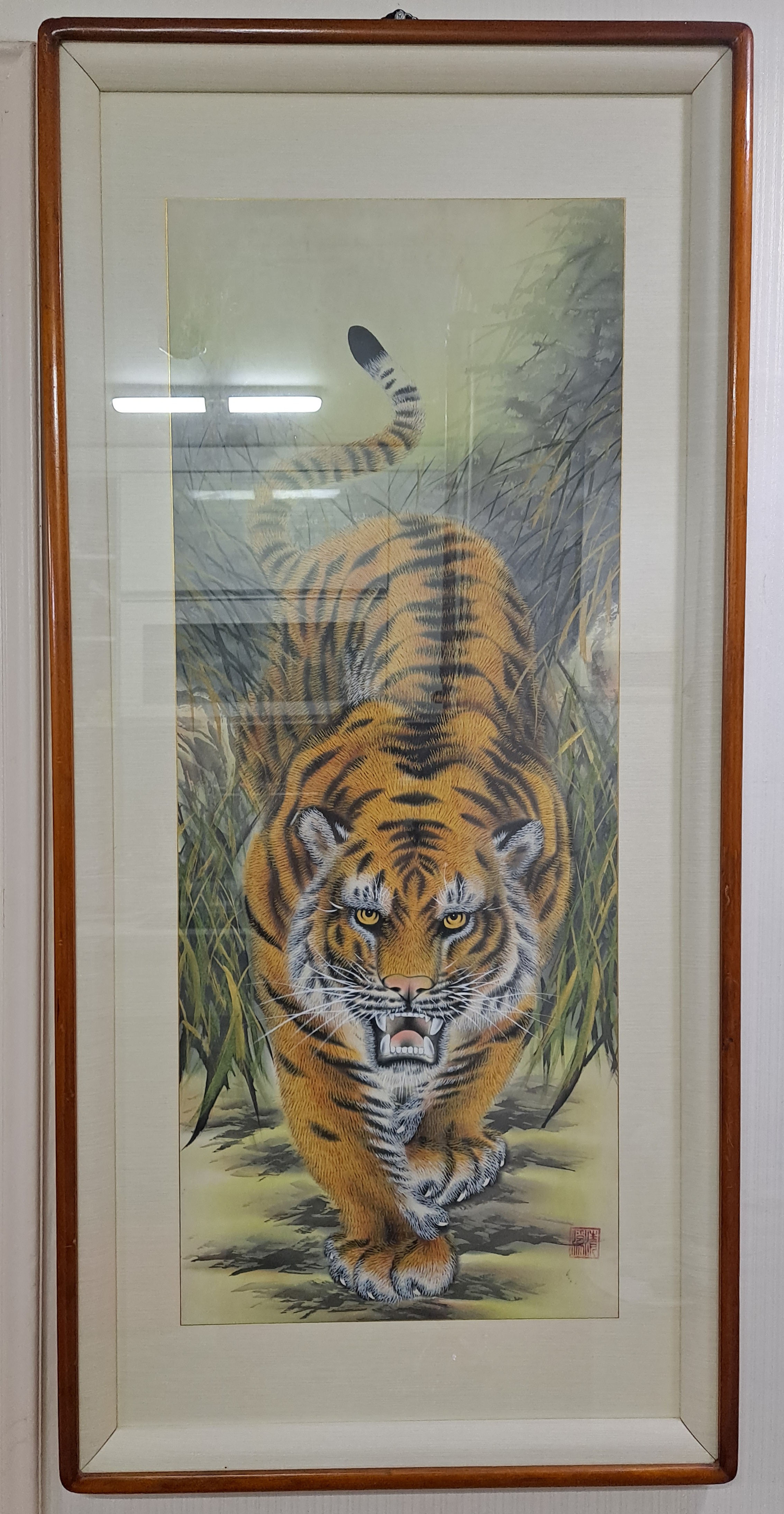 안동 동인당한약방 탕제원 직원이 어럽게 살아서 동인당한약방 원장선생님 지인이신 동양화 화가선생님이 친작품으로 탕제원 직원한테 용기를 주고자 그림을 그린 작품입니다. 이 그림은 작가미상으로 1975년 추정으로 호랑이 입체 그림인데 금가루를 분으로 칠해 변질을 막기위해 그린 그림입니다. 작 . . .
