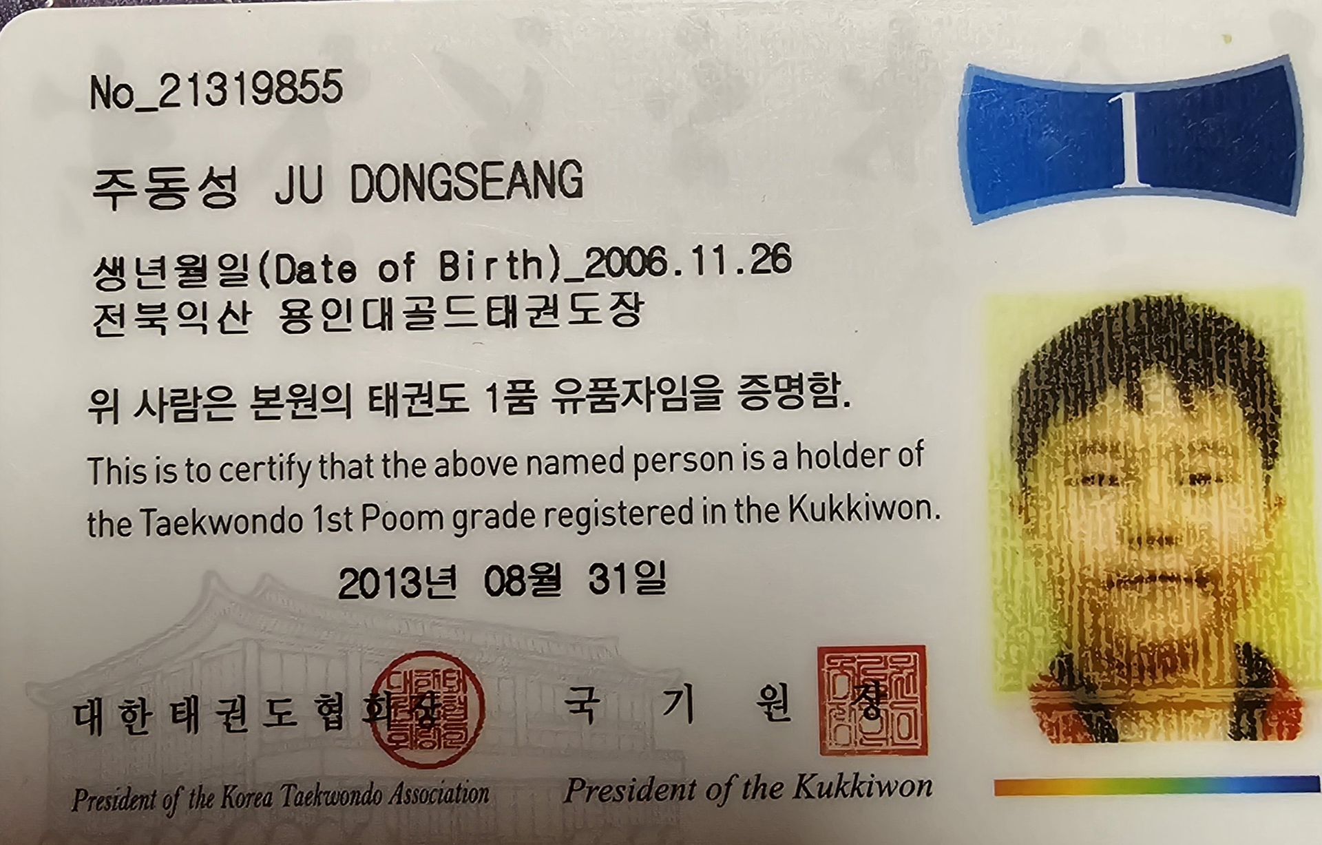 1. 태권도   2. 대한태권도협회장